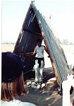 Tara almost sliding off the back of her ostrich